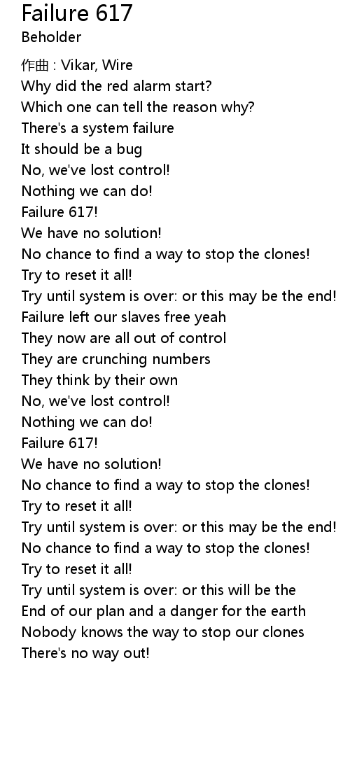 | Song | Failure 617 |