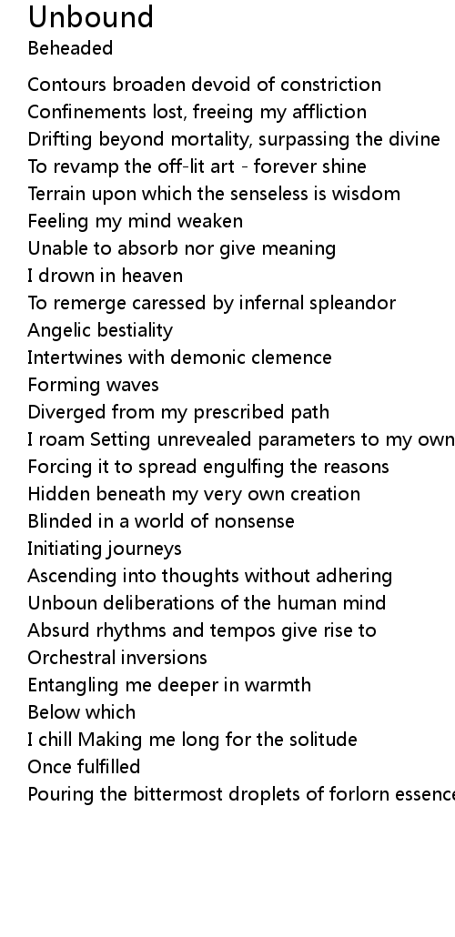 Confinements lost, freeing my affliction |