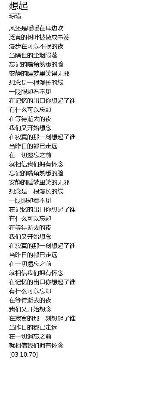 | [02:34.75] | zài jì yì de chū kǒu nǐ xiǎng qǐ le shuí |