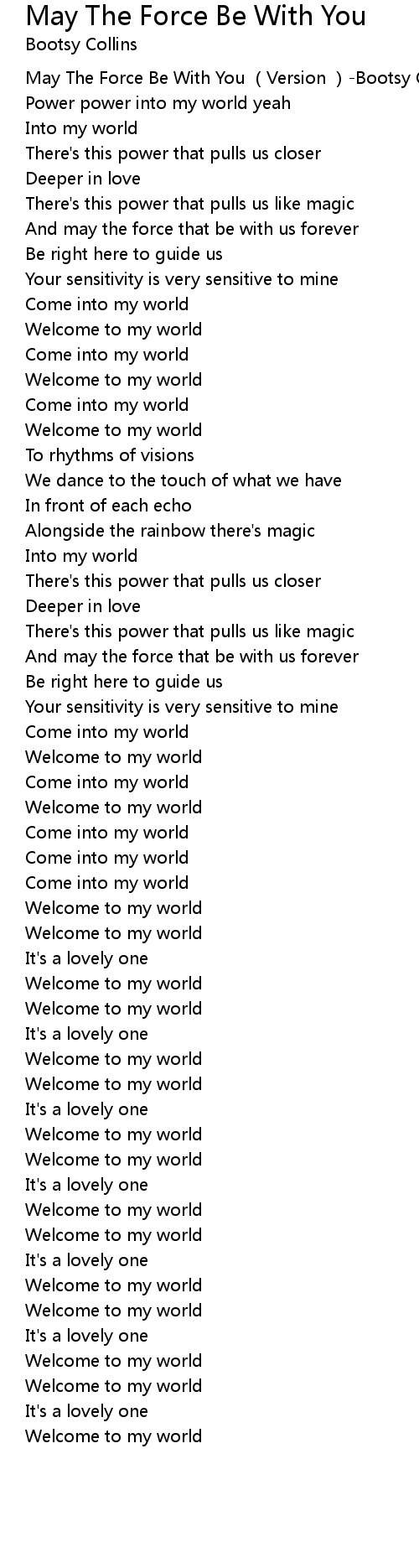| [00:00.00] | May The Force Be With You Version Bootsy Collins |