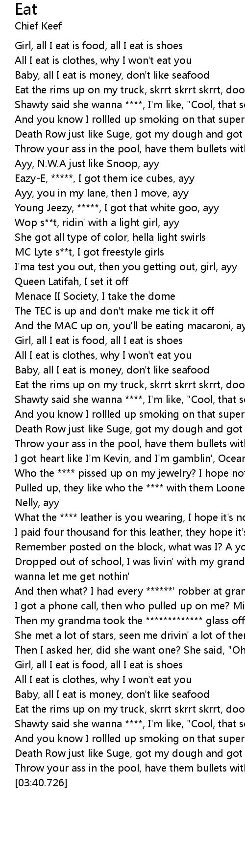 Girl, all I eat is food, all I eat is shoes |