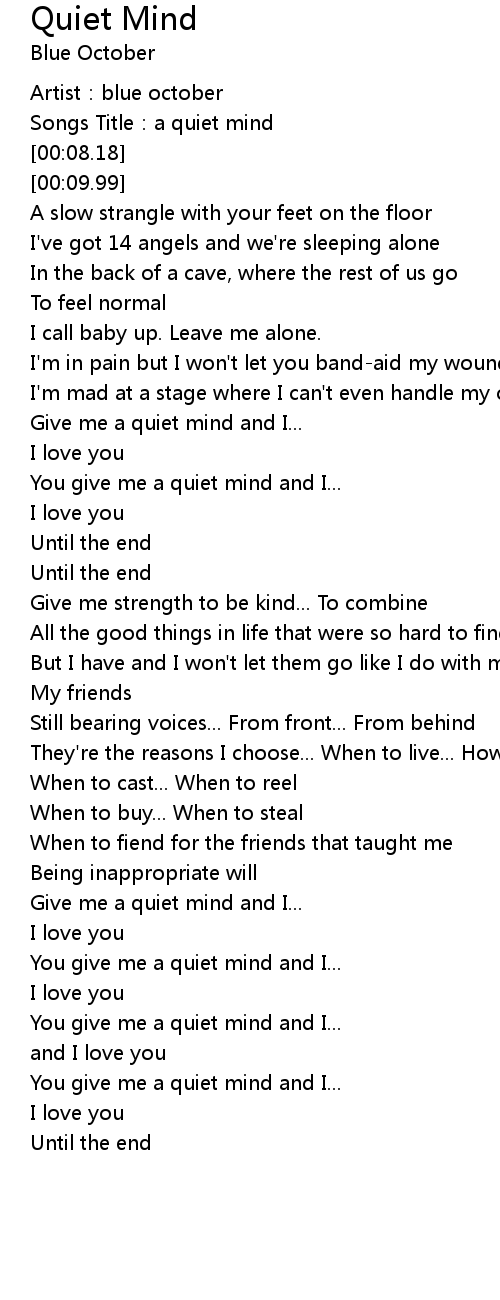 | [00:57.25] | I'm in pain but I won't let you band-aid my wound |