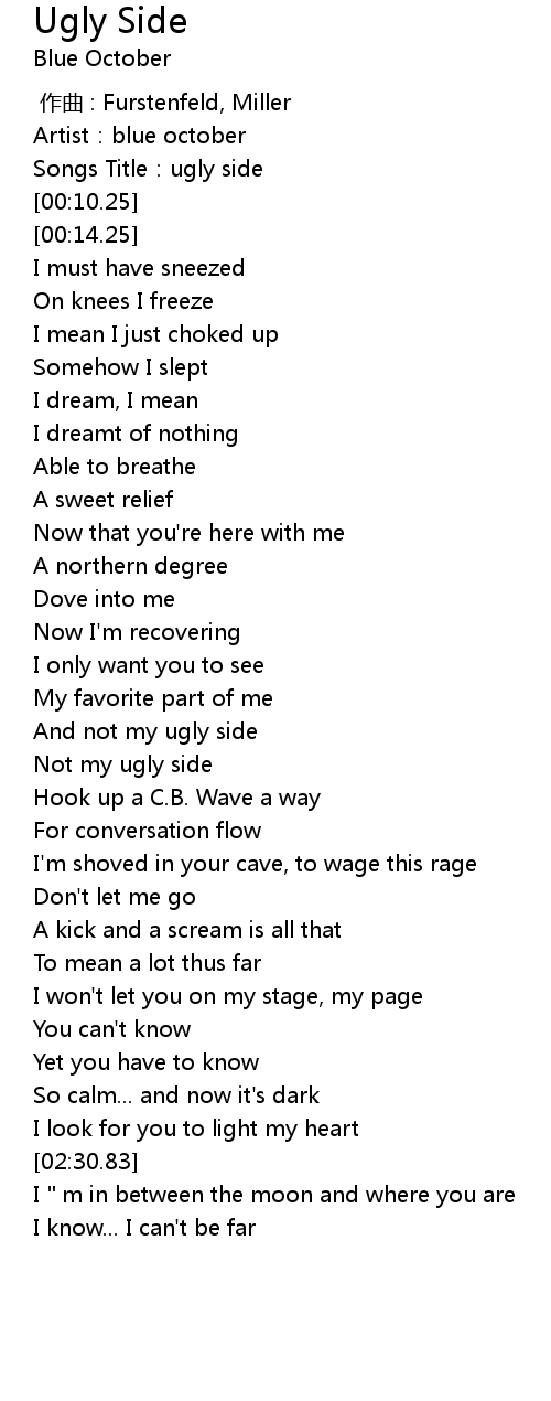 | [01:22.26] | Not my ugly side |