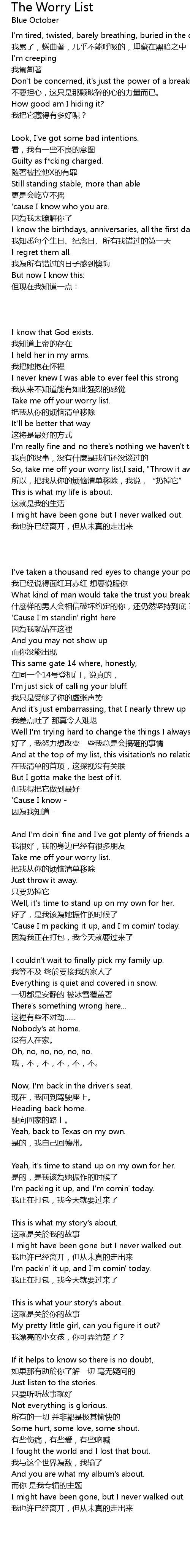 | 我也许已经离开,但从未真的走出来 | |