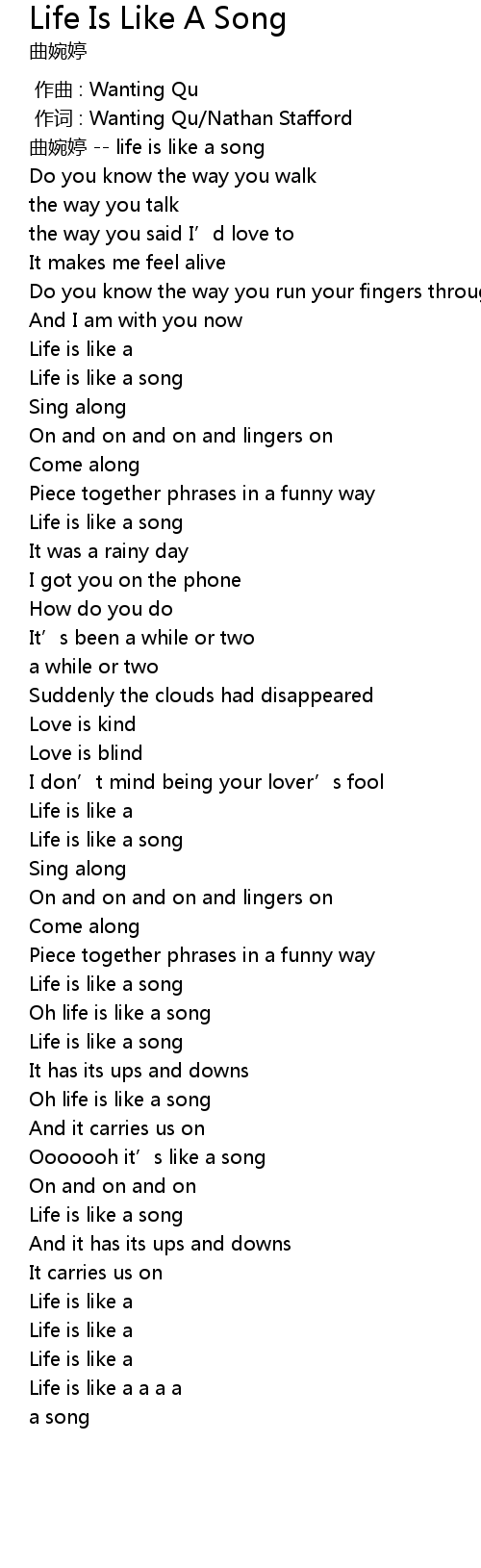 | [00:03.12] | qū wǎn tíng life is like a song |