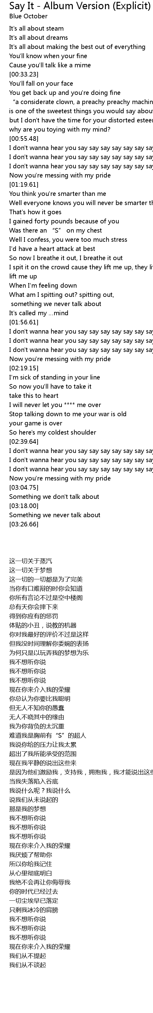 | [02:51.11] | I don't wanna hear you say say say say say say say say it |