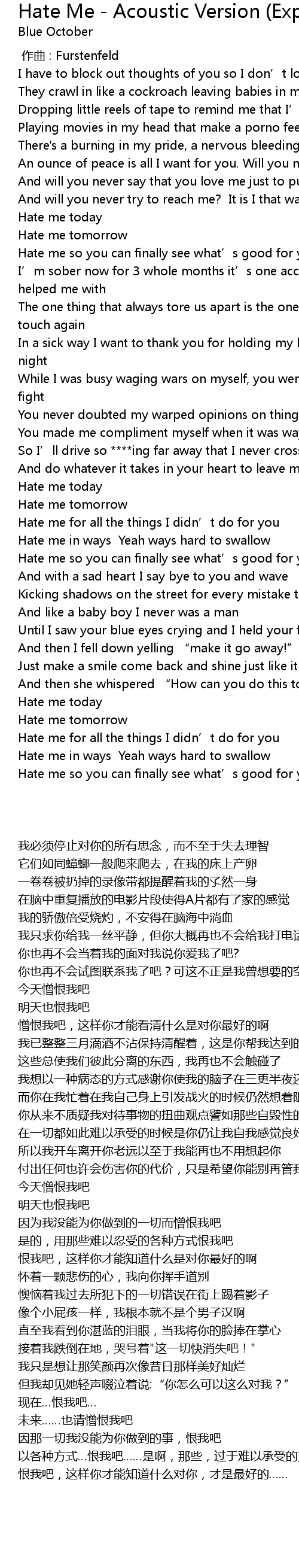 | [02:18.490] | Hate me so you can finally see what' s good for you |
