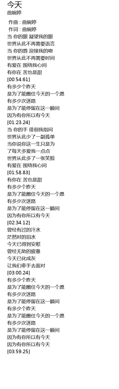 | [00:01.00] | 作词 : 曲婉婷 |