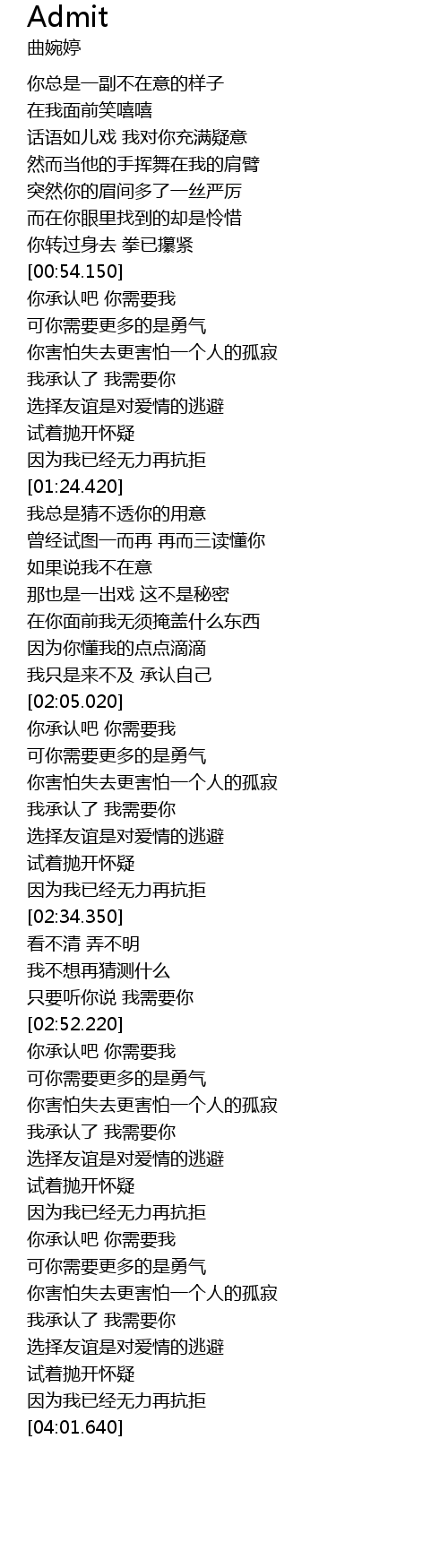 | [03:35.150] | 你承认吧 你需要我 |