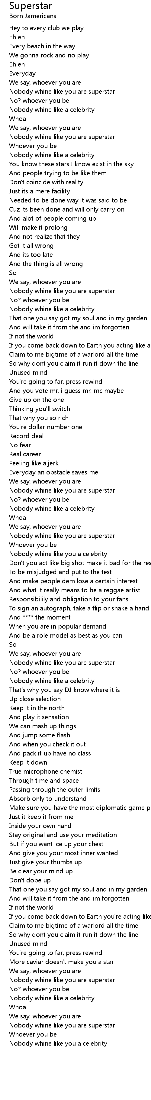 Nobody whine like you are superstar |