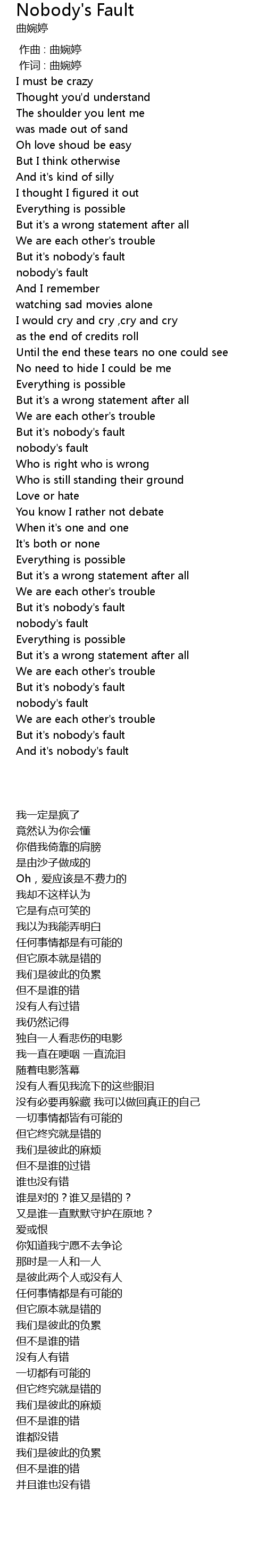 | [02:38.259] | But it' s nobody' s fault |