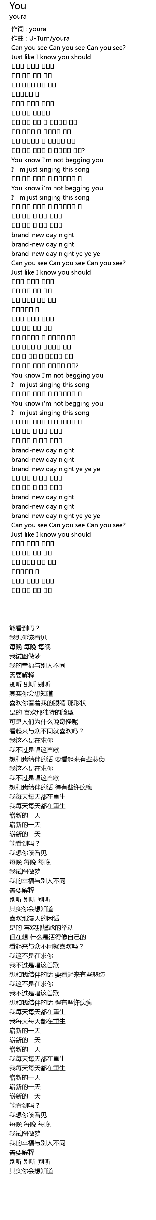 | [00:01.000] | 作曲 : U-Turn/youra |
