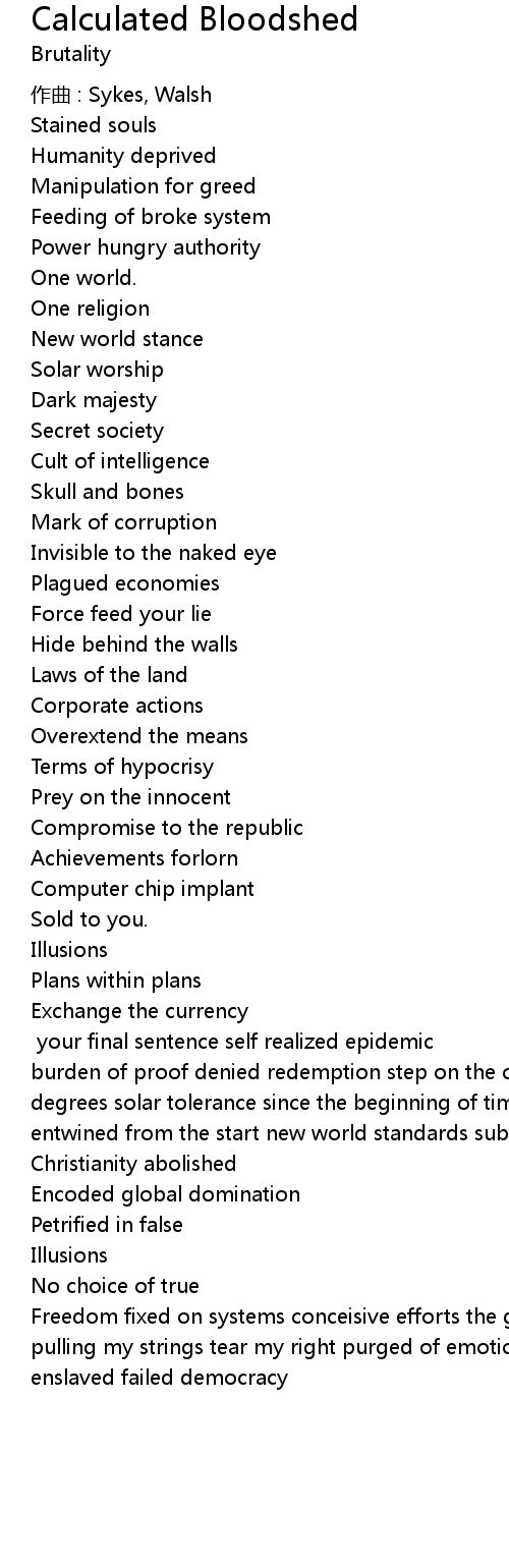 | Song | Calculated Bloodshed |