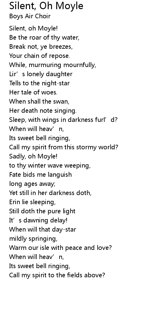 | [00:10.635] | Silent, oh Moyle! |