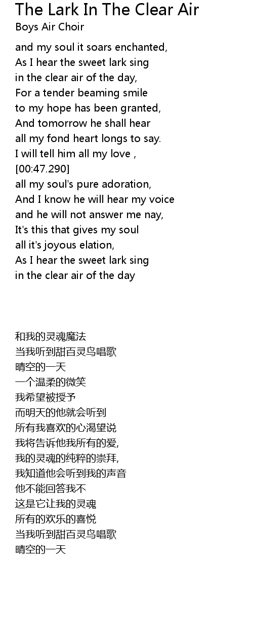 As I hear the sweet lark sing |