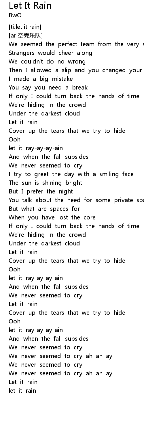 | [02:57.805] | We never seemed to cry ah ah ay |