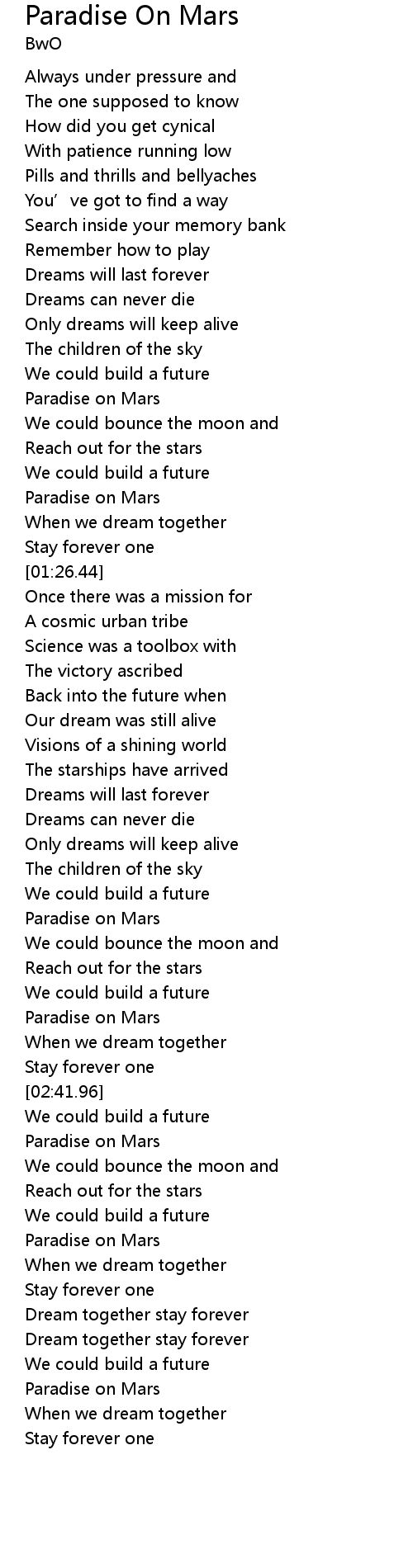 | [03:41.09] | Paradise on Mars |