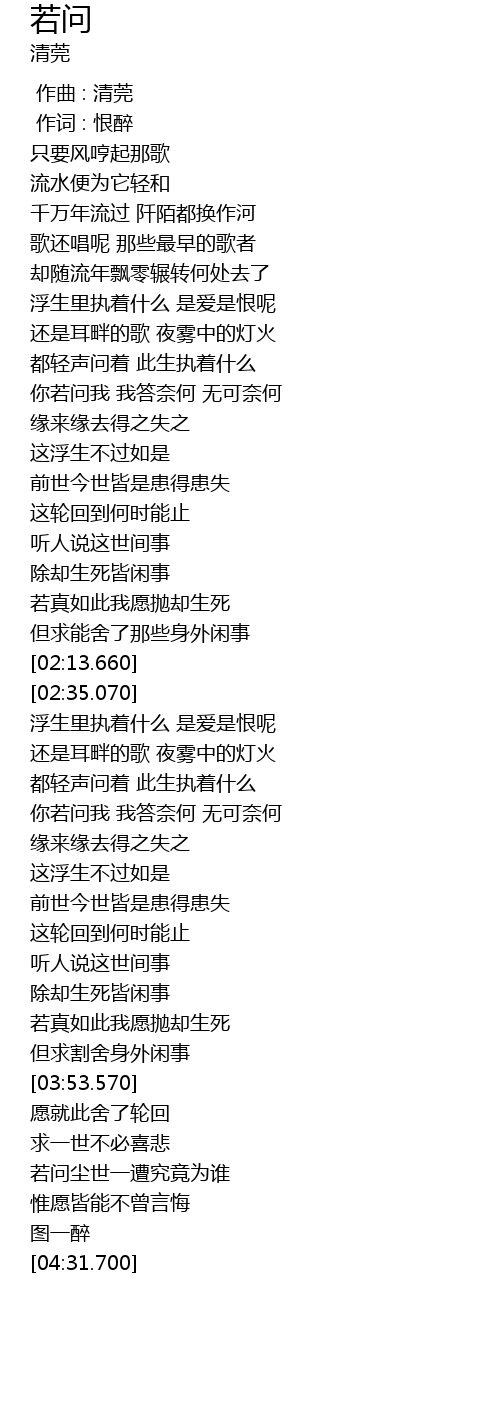 | [03:04.990] | 都轻声问着 此生执着什么 |