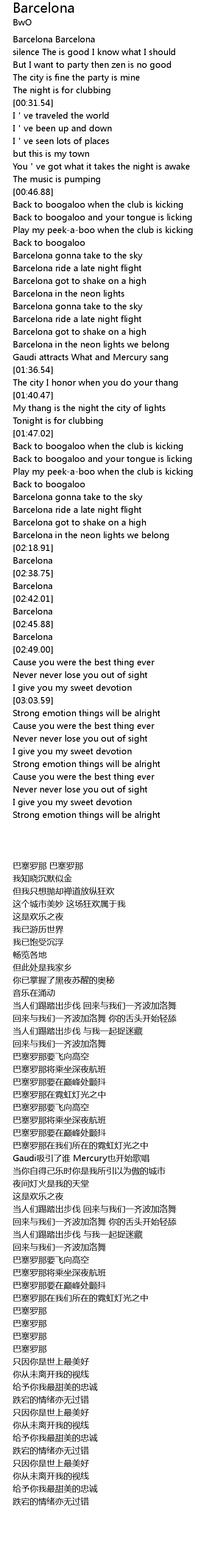 | [02:13.47] | Barcelona in the neon lights we belong |