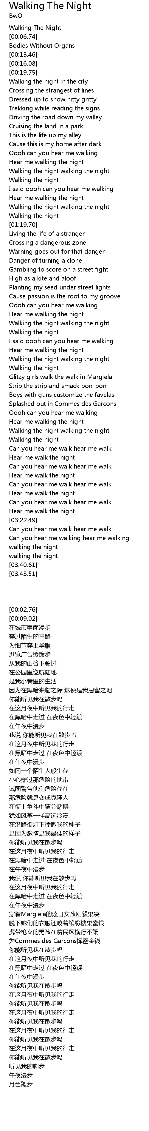 | [02:51.36] | Walking the night |