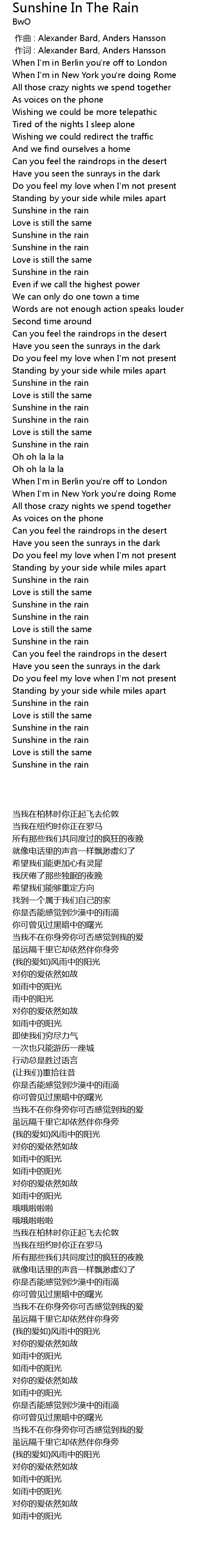 | [00:01.00] | 作词 : Alexander Bard, Anders Hansson |