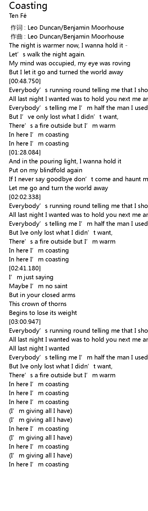 | [03:58.405] | In here I' m coasting |