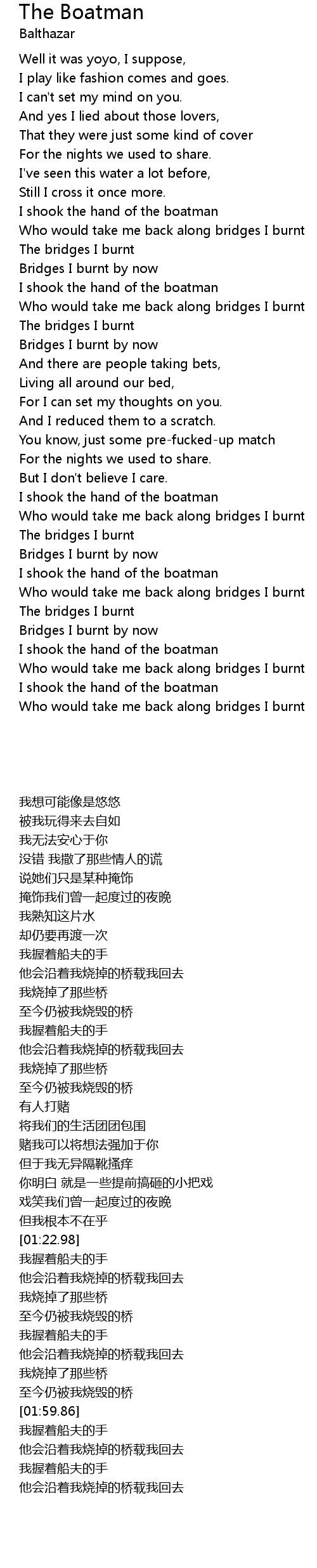 | I shook the hand of the boatman | |