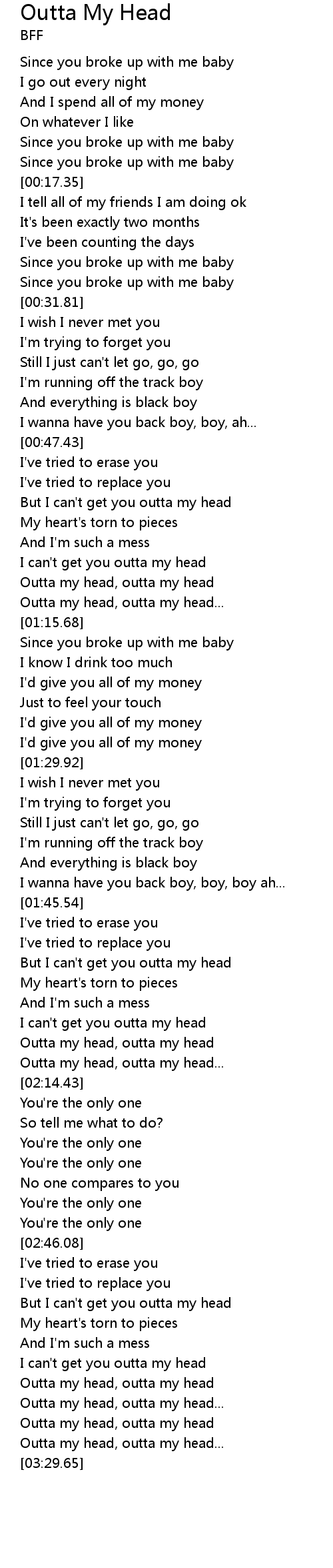 | [02:59.94] | Outta my head, outta my head |
