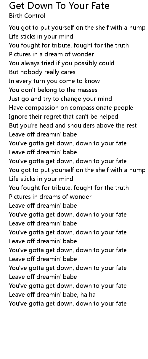 You've gotta get down, down to your fate |