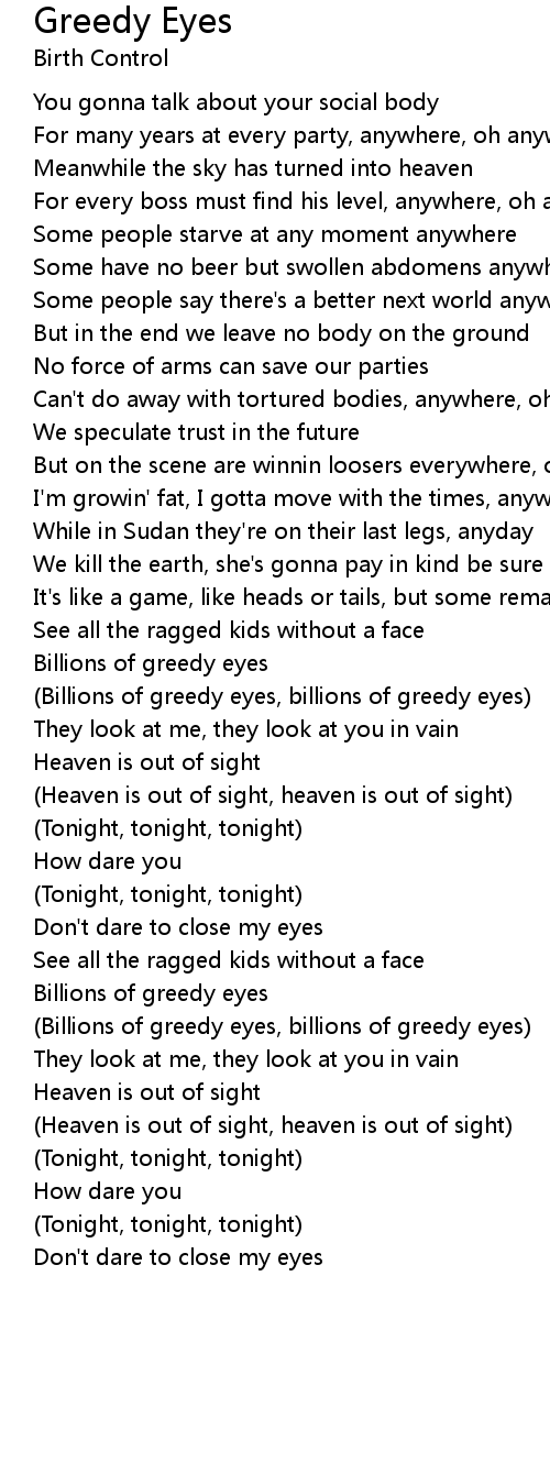 Greedy Eyes Lyrics