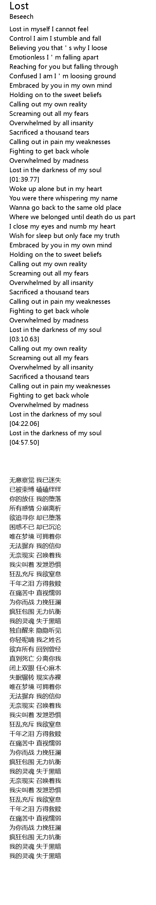 | [04:15.34] | Lost in the darkness of my soul |