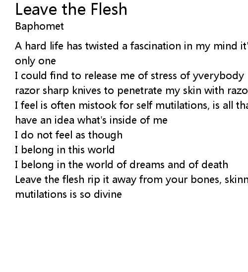 Leave the flesh rip it away from your bones, skinned alive leave the flesh self mutilations is so divine |