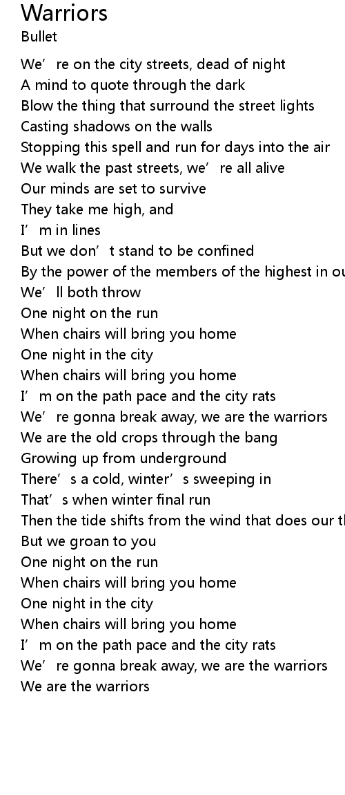 | We' re gonna break away, we are the warriors | |