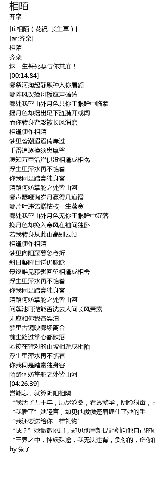 | [04:39.717] | qǐ néng wàng, jiù suàn yīn yáng xiāng gé __ |