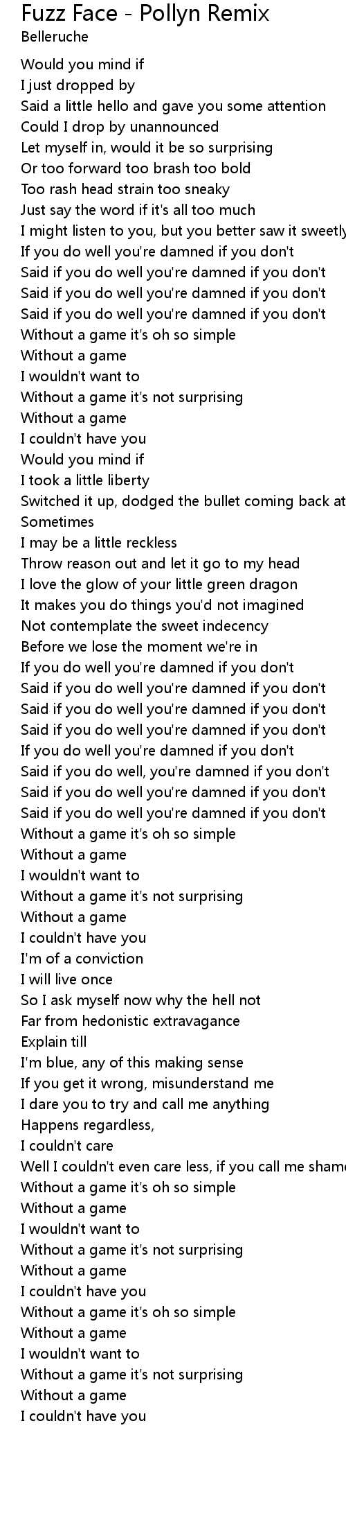Well I couldn't even care less, if you call me shameless |