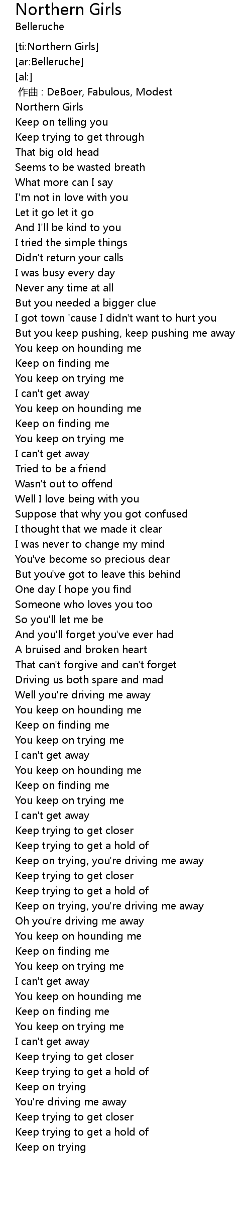 | [02:18.21] | Keep on trying, you' re driving me away |