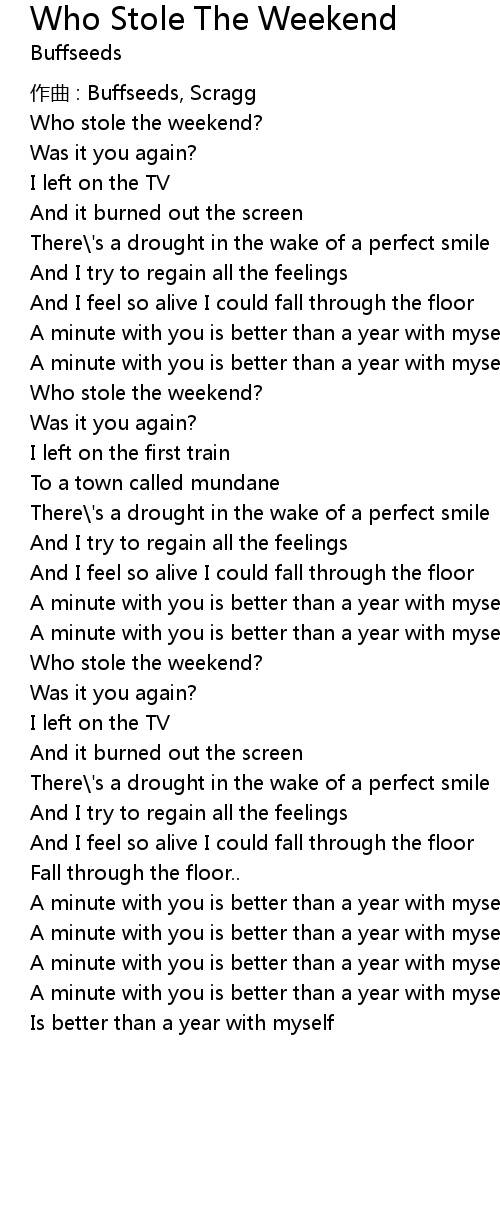 | Song | Who Stole The Weekend |