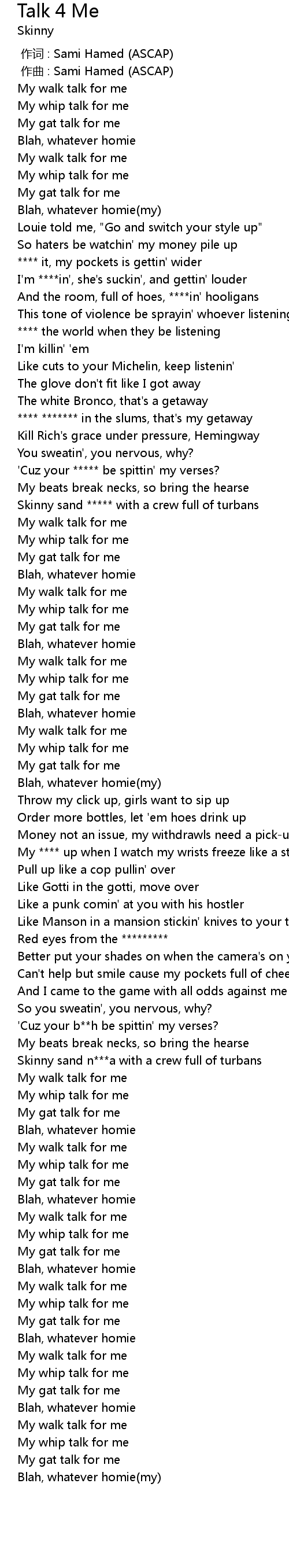 | [02:22.564] | Skinny sand n***a with a crew full of turbans |