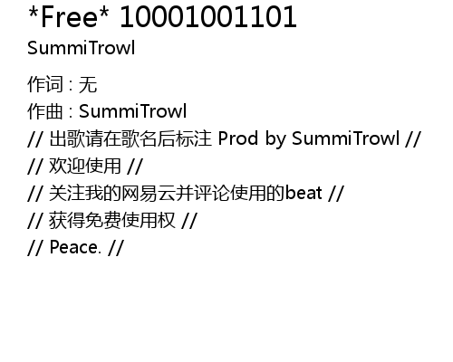 | // 出歌请在歌名后标注 Prod by SummiTrowl // | |