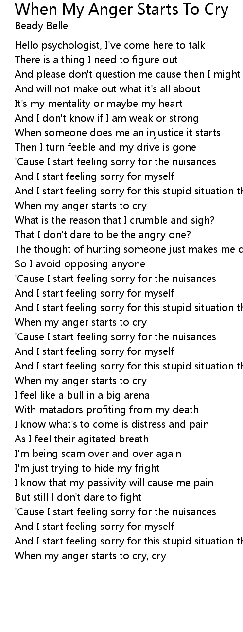 When my anger starts to cry, cry |
