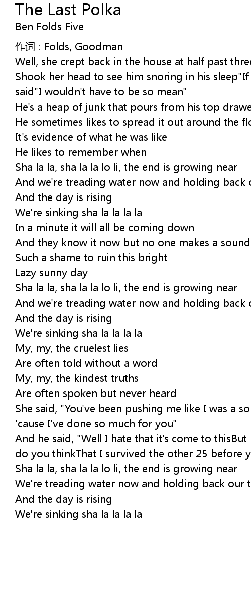 | And he said, "Well I hate that it's come to thisBut baby I was doing fine, how do you thinkThat I survived the other 25 before you?" | |