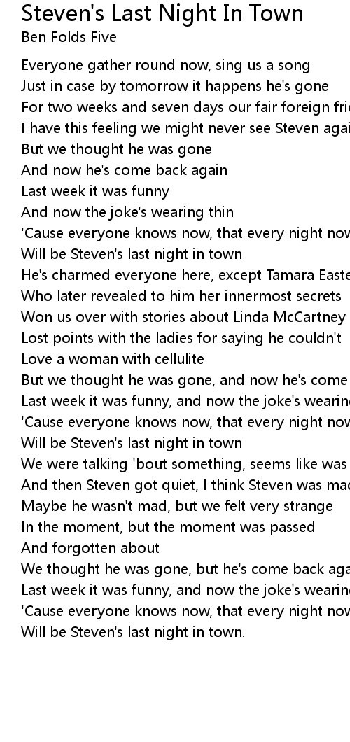 Will be Steven's last night in town |