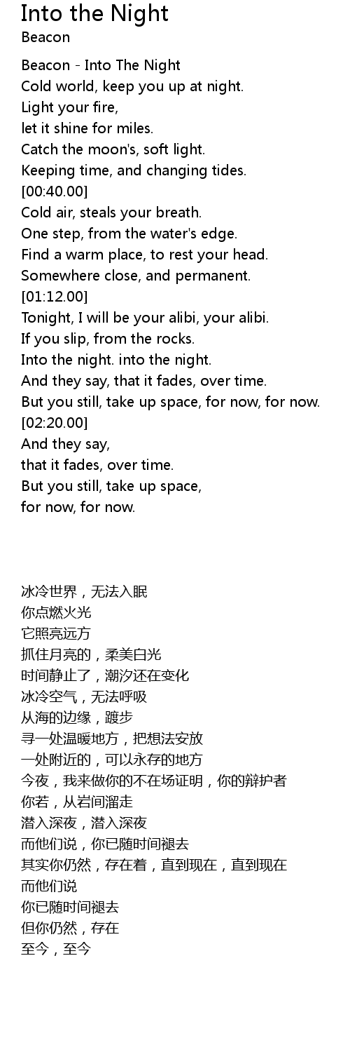 | [02:06.60] | But you still, take up space, for now, for now. |