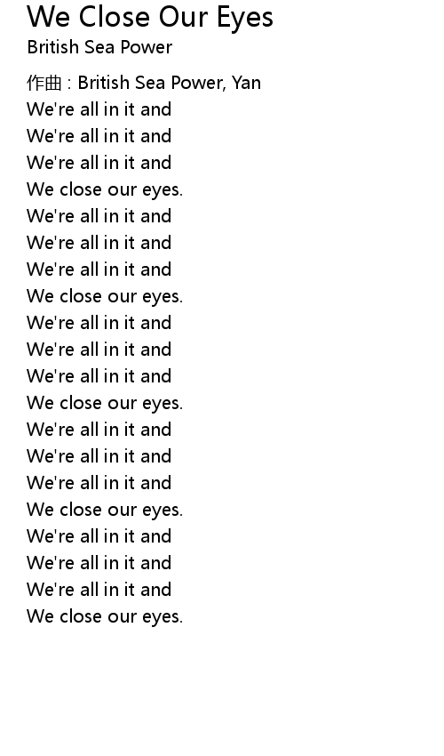 | Song | We Close Our Eyes |