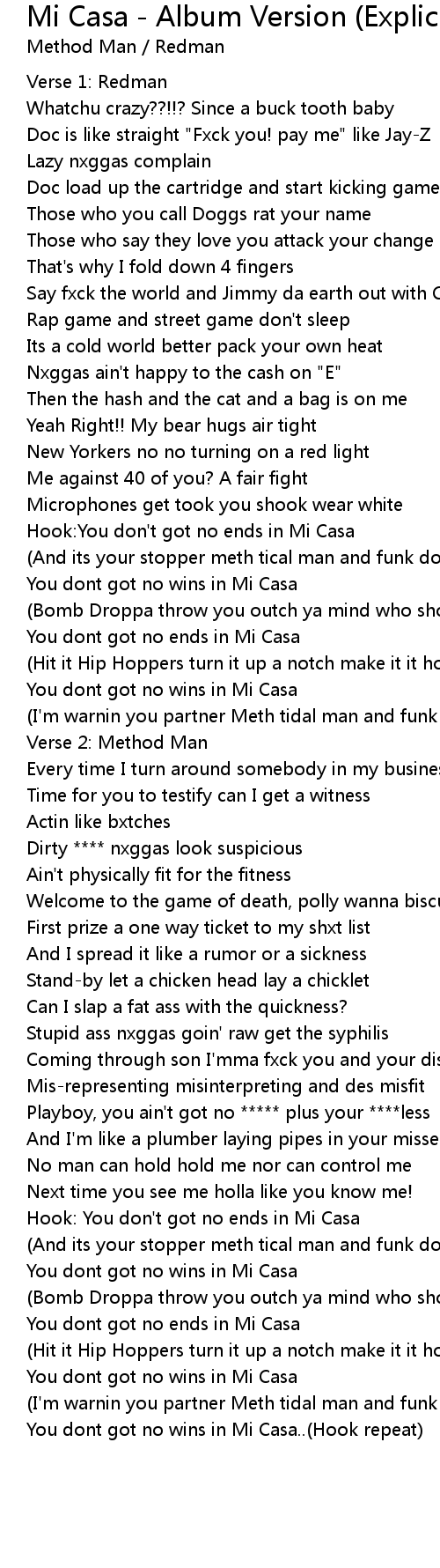 You dont got no wins in Mi Casa..(Hook repeat) |