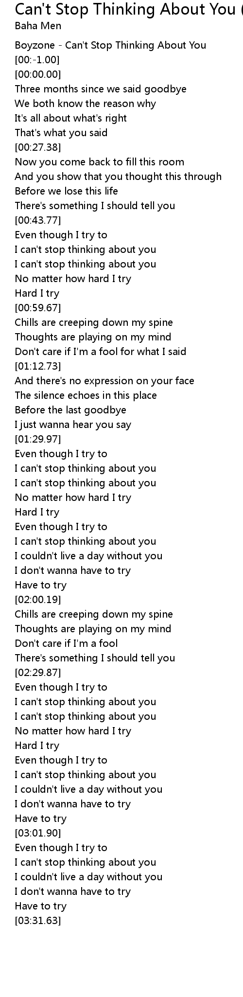| [03:19.39] | I can't stop thinking about you |