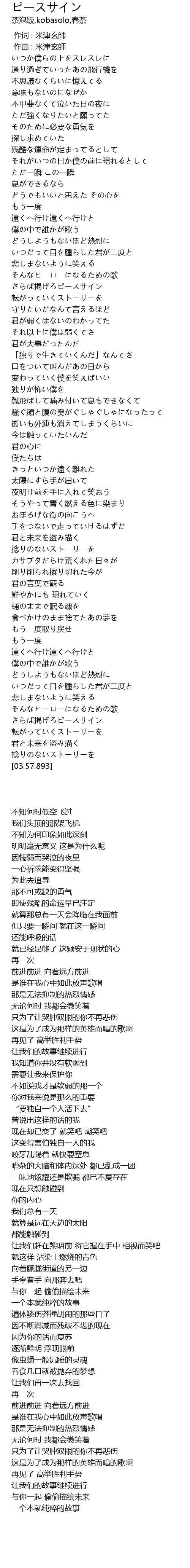 | [03:48.072] | さらば掲げろピースサイン |