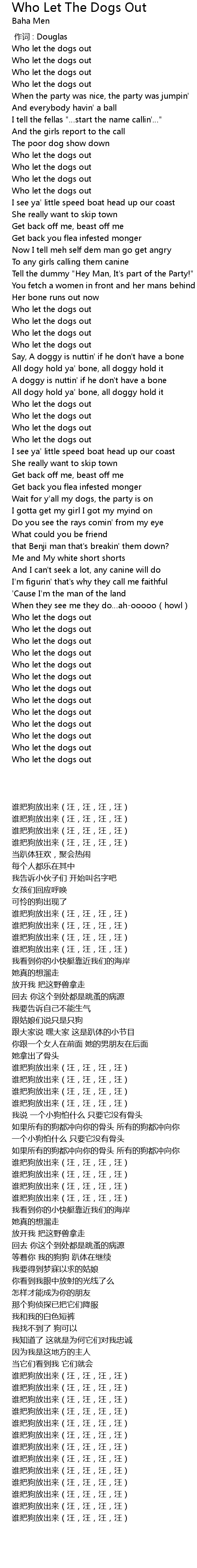 | [00:40.910] | Who let the dogs out |