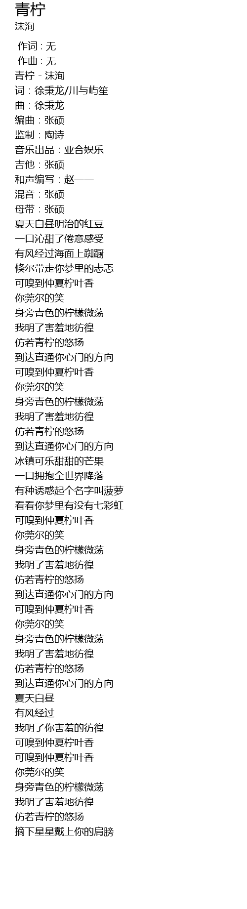 | [00:02.176] | 青柠 - 沫洵 |