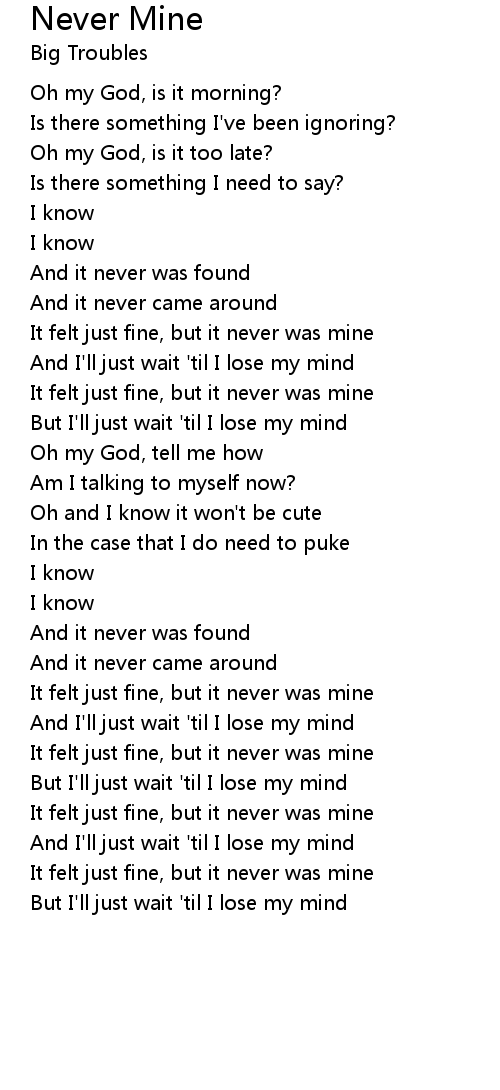 It felt just fine, but it never was mine |